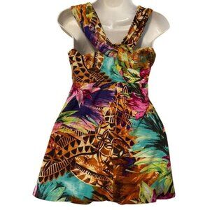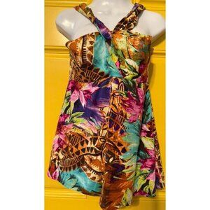 Boston Proper Multicolor Tropical Print Sleeveless Top With Twist Neck & Draped