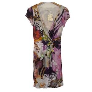 Boston Proper NEW Size 4/Small Faux Wrap Floral Dress Tropical Coastal Art Vneck