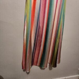 Boston Proper NWT Rainbow Stripe Maxi Dress Womens SM Tie Neck Colorful Boho