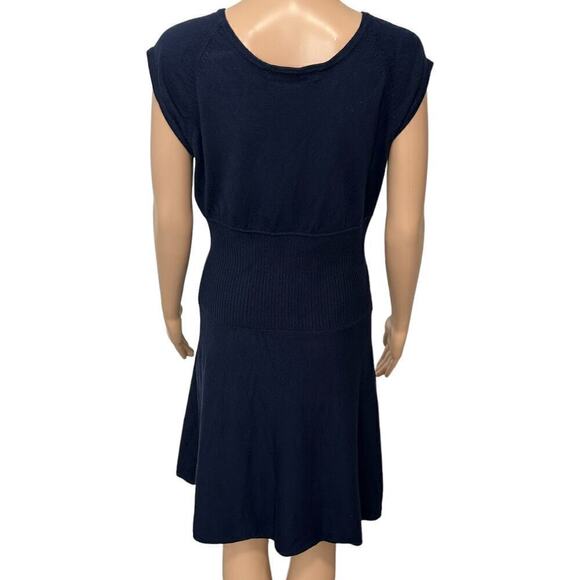 Boston Proper Navy Cap Sleeve Fit & Flare Sweater Knit Mini Dress (M)