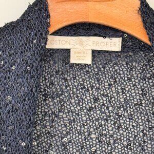 Boston Proper Navy Open-FrontSequin Knit Cardigan size XL Womens Sweater