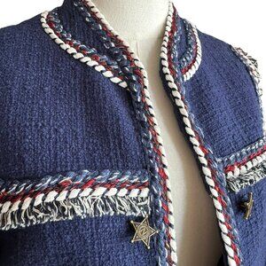 Boston Proper Navy Tweed Jacket Size 6 – Braided Trim & Star Buttons