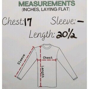 Chest - Armpit to Armpit: (approx., flat) 17 in.
