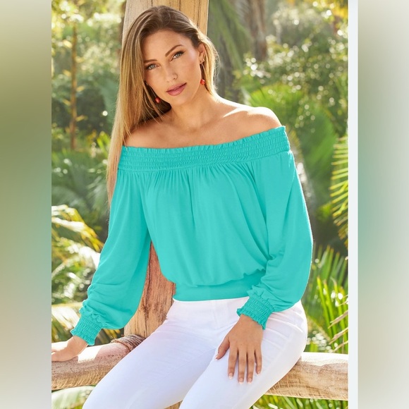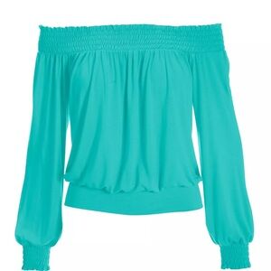 EUC Boston Proper Chic aqua top off-the-shoulder top. Perfect for casual outings.