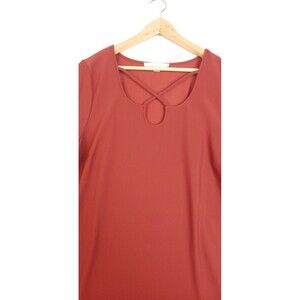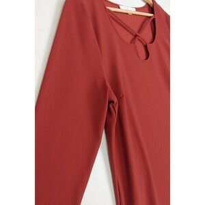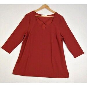 Boston Proper Womens Size XL dark orange Stretch Blouse Criss Cross Neck 3 4 Sleeve Top