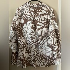 Boston Proper Outlined Florals Print Embellished Linen Utility Jacket Coastal Safari
