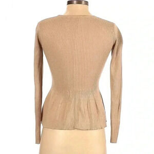 Boston Proper | Peplum Tan Ribbed Sweater Gold Metallic Collar Size XXS