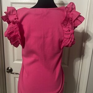Add a pop of color to your wardrobe with this stylish pink ruffle sleeve top. Perfect for any occasion. Never worn. Size medium.