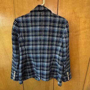 Boston Proper Plaid Tweed Double Breasted Blue Blazer Size 12