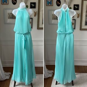 Boston Proper Pleated High-Neck accordion pleat wide leg Jumpsuit in minty aqua sea glass green. Product Sku: 2BB5130. $120 retail.