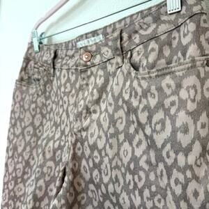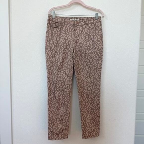 Boston Proper Printed Slim Straight Pants Taupe Beige Size 8 Cotton Blend