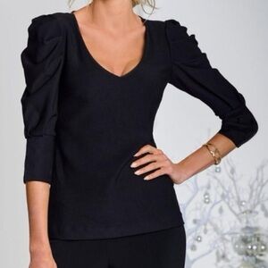 Boston Proper Puff Sleeve Top S Black Blouse Shirt Travel Minimalist
