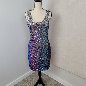Boston Proper Purple Multi Ombre Sequin Tank Party Dress