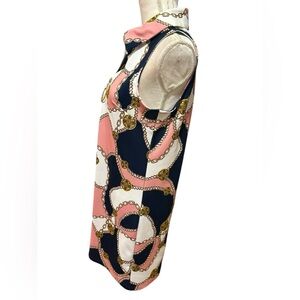 Boston Proper RETRO 60s twiggy style pink navy Sleeveless Chain Print dress