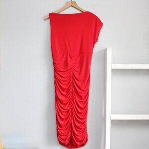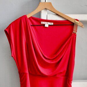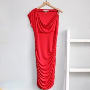 Boston Proper Red Chain Detail Ruched Draped Neck Sheath Bodycon Dress Size 14