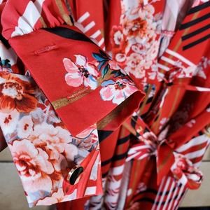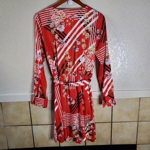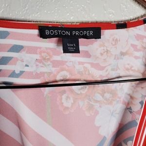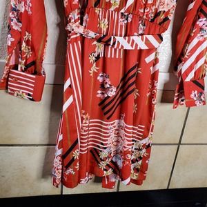 Boston Proper Red floral & stripe wrap midi dress Polyester blend