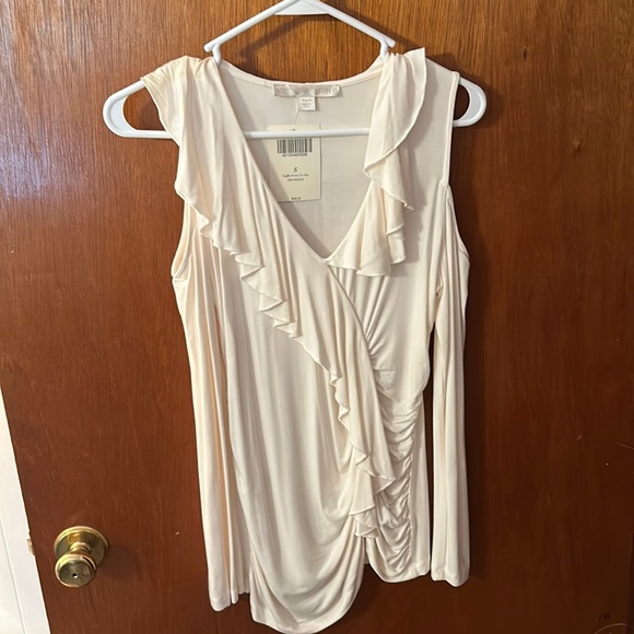 Boston Proper Ruffle Front cold shoulder Top