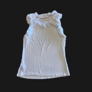 This is a beautiful ruffled sleeveless top. Perfect under a blazer or jean jacket or perfect by itself.