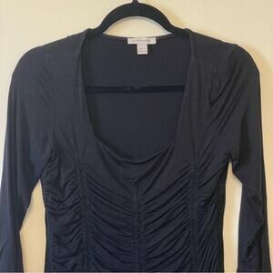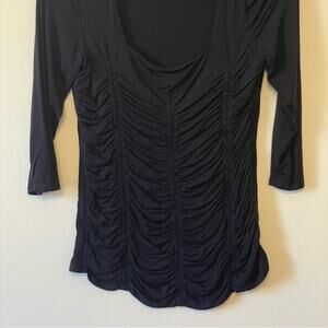 Boston Proper S black long sleeve blouse ruche corset goth elegant classic