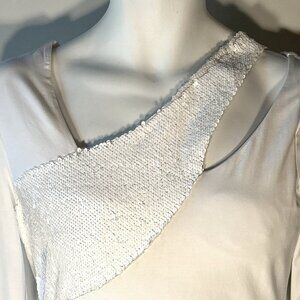 Boston Proper SZ M White Top Sequin Asymmetrical Cut Out Dressy Club Party Modern