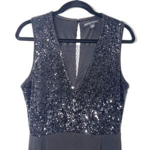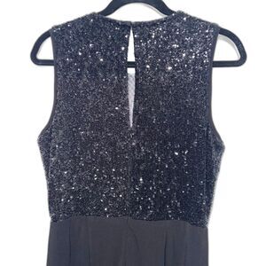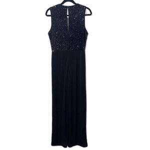 Boston Proper Sequin Deep V Sheer Panel Jumpsuit - Black 8. This item is pre-owned in excellent condition.