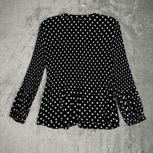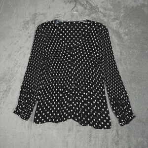 Boston Proper Shirt Women Medium Black White Polka Dot Pleats Button Up Feminine