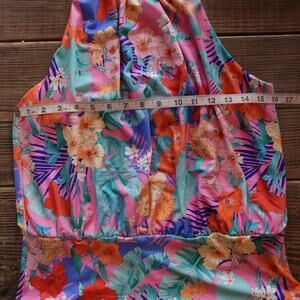 Boston Proper Shirt Womens Small Pink Tropical Floral Mock Neck Halter Top