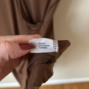 Boston Proper Side Ruched Faux Wrap Dress Brown Short Sleeve V-Neck Women’s 12