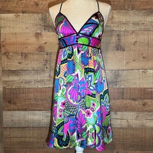 🌻 Boston Proper Silk Dress sz Small Y2K Abstract Psychedelic Retro Bright Party