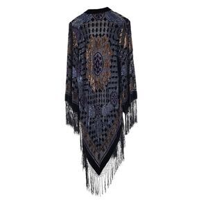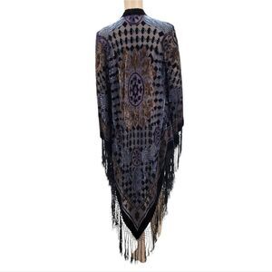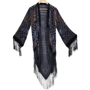 Boston Proper Silk Velvet Burnout Kimono Duster Fringe Longline Maxi Length