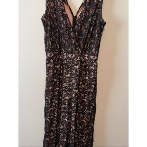 Boston Proper Size 10 All Over Lace Jumpsuit Black Wide Leg Cocktail Party Glam