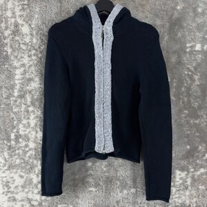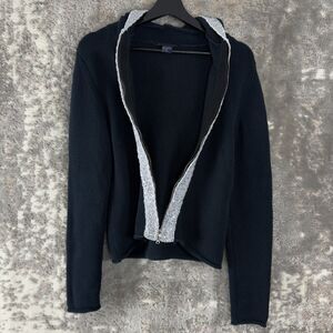 Boston Proper Size M Sequin Hoodie Full Zip Sweater Jacket Long Sleeve Navy