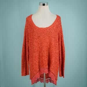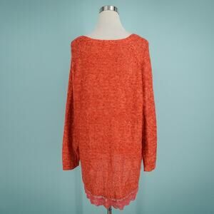 Boston Proper Size XL Orange Sequin Details Lace Trim Scoop Neck Long Sleeve Acrylic Polyester Blend Knit Pullover Sweater