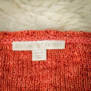 Boston Proper Size XL Orange Sequin Lace Trim Scoop Neck Long Sleeve Sweater