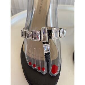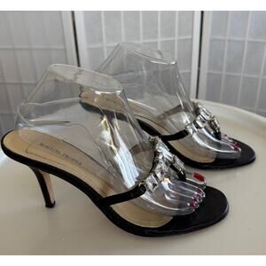 Boston Proper Slip On Black 3” Heals Sandals Rhinestones Size 8 PROM Wedding