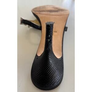 In good pre-owned condition, back of left heel has been punctured, not noticeable while wearing.
