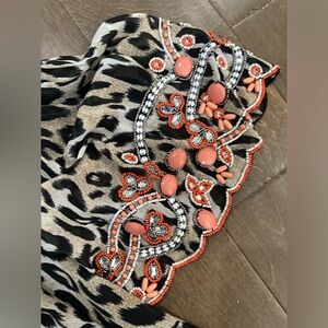 Boston Proper Smocked Embellished Off Shoulder Leopard Dress Size S
