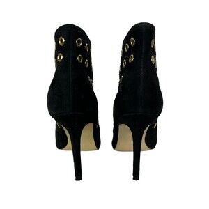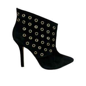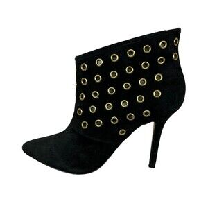 Boston Proper Stiletto Ankle Boots Women's 6.5 Black Suede w Gold Grommets