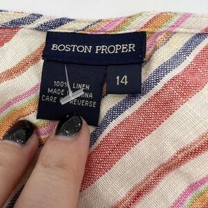 Boston Proper Striped 100% Linen Tank Size 14 Multicolor