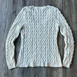Boston Proper Sweater White V Neck Cable Knit Faux Pearl Embellished Size Large