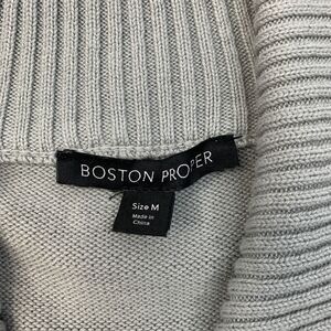 Boston Proper Sweater Womens M Medium Gray Full Zip Knit Cotton Ribbed Trim