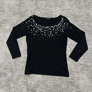 Boston Proper Sweater Womens Medium Black Embellished Rhinestone Scoop Neck