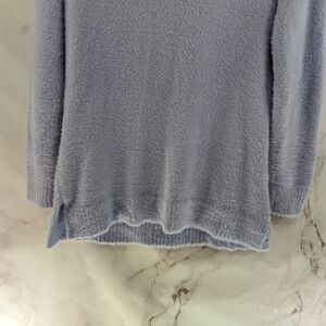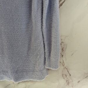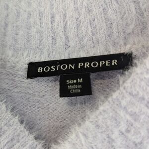 Boston Proper Sweater Womens Medium Purple Fuzzy Eyelash Slouchy Shoulder V Neck