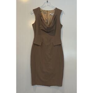Boston Proper Tan Cowlneck Sheath Dress Career Womens Size 8 (732)