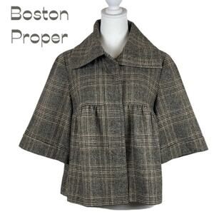 Boston Proper Tan & Cream Plaid Wool Blend Academia Prep Jacket NWOT Size 8