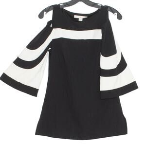Boston Proper Top Cold Shoulder Minimalist Classic Retro Preppy Black White XS