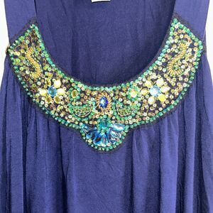 Boston Proper Top Size Small blue beaded scoop neck stretch