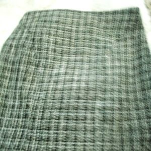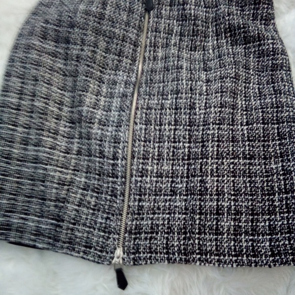 Skirt in black and white tweed . Closure is a full silver zipper on the front. Skirt is 18 inches and with a 15 inch waist. Full lined