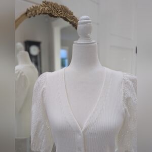 V Neck Sweeter with puff sleeves, new with tags, size small
