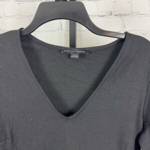 Boston Proper V-Neck Black Form Fitting 3/4 Length Sleeve Dress Size Medium